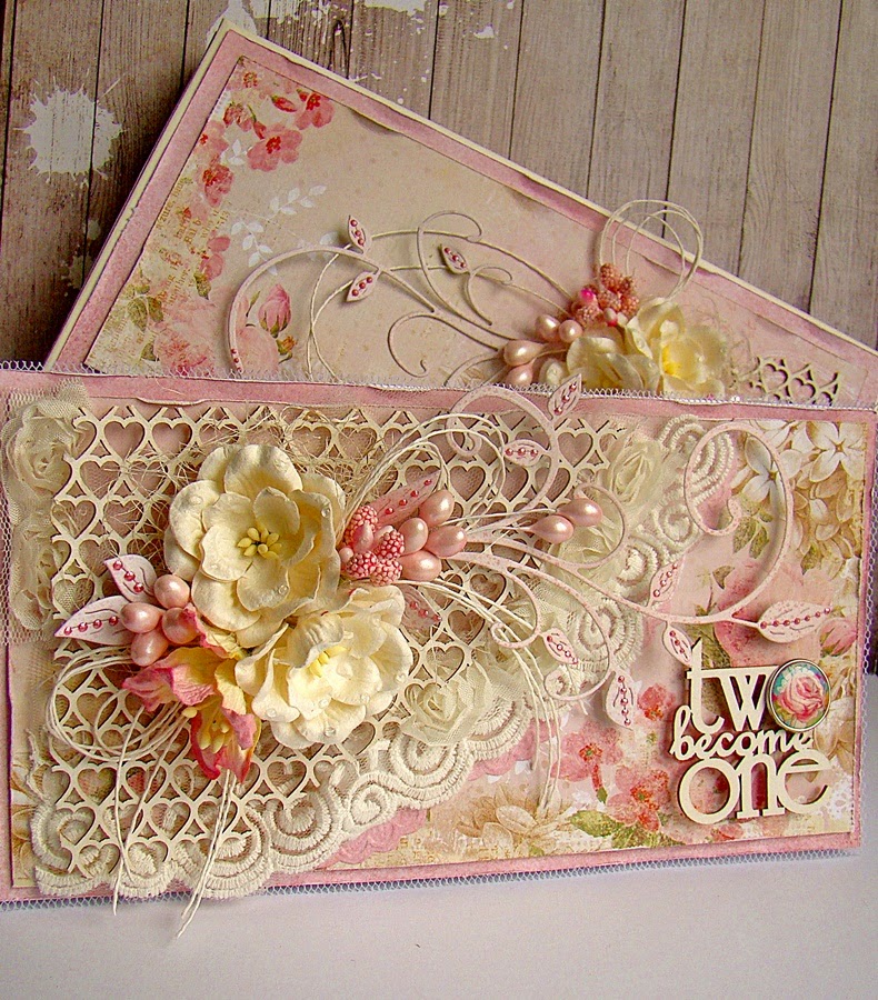 Wykorzystałam tu farby, gesso, ćwieki, perełki, mikrogranulki i inne przydasie, które miałam pod ręką. Całość w turkusach, beżach z kremowo-białymi kwiatami. na odwrocie widnieją życzenia dla solenizantki. Myślę, że to wspaniała i wzruszająca pamiątka.